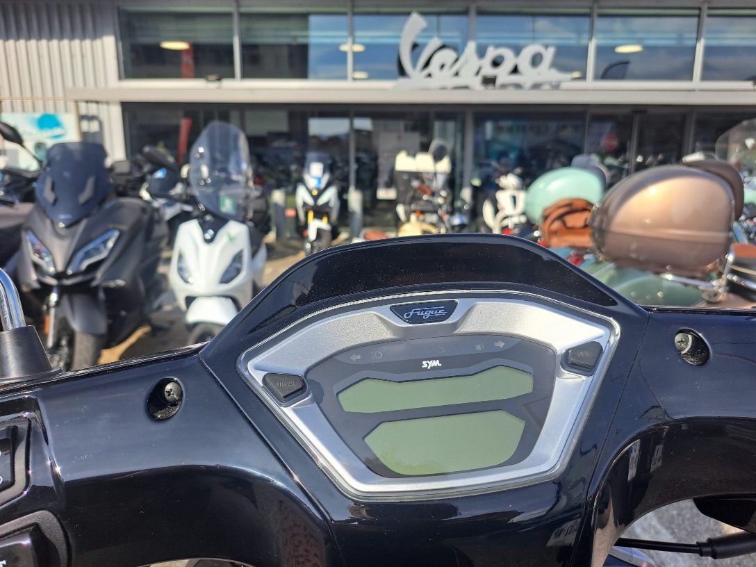 À vendre SYM Fugue, scooter pratique et élégant, disponible en déstockage exceptionnel avec top case inclus. Idéal pour un usage quotidien, alliant confort et fiabilité.